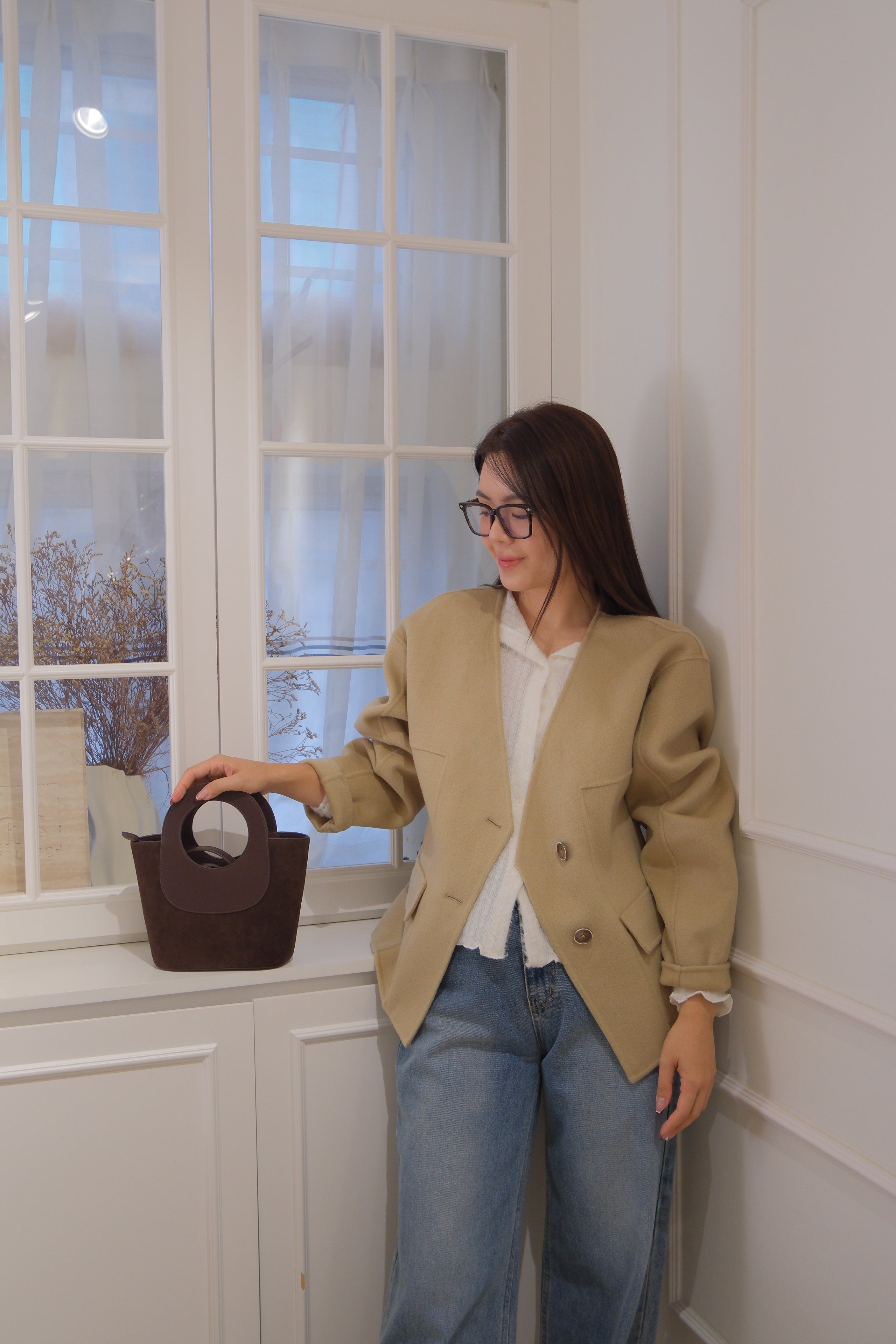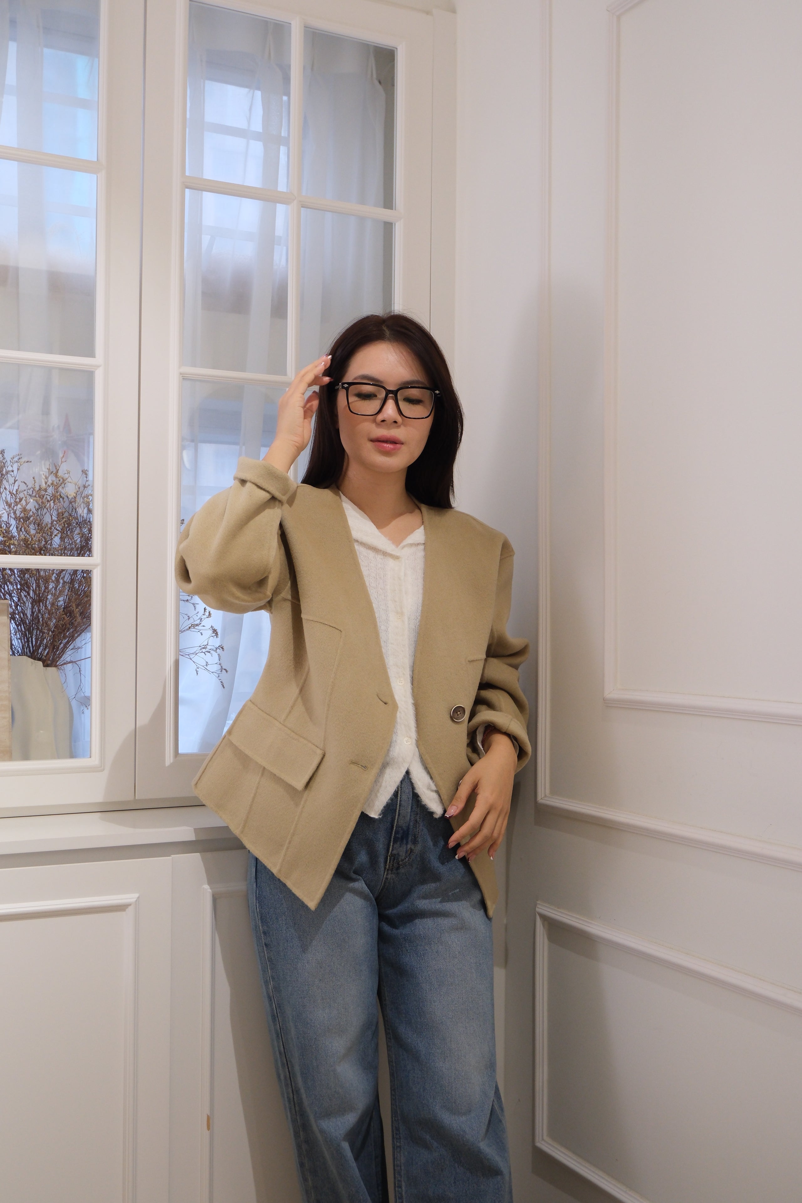 【LE ZANS BRAND COLLECTION】 Khaki Slim Open Chest Coat (100%wool) [J0069]
