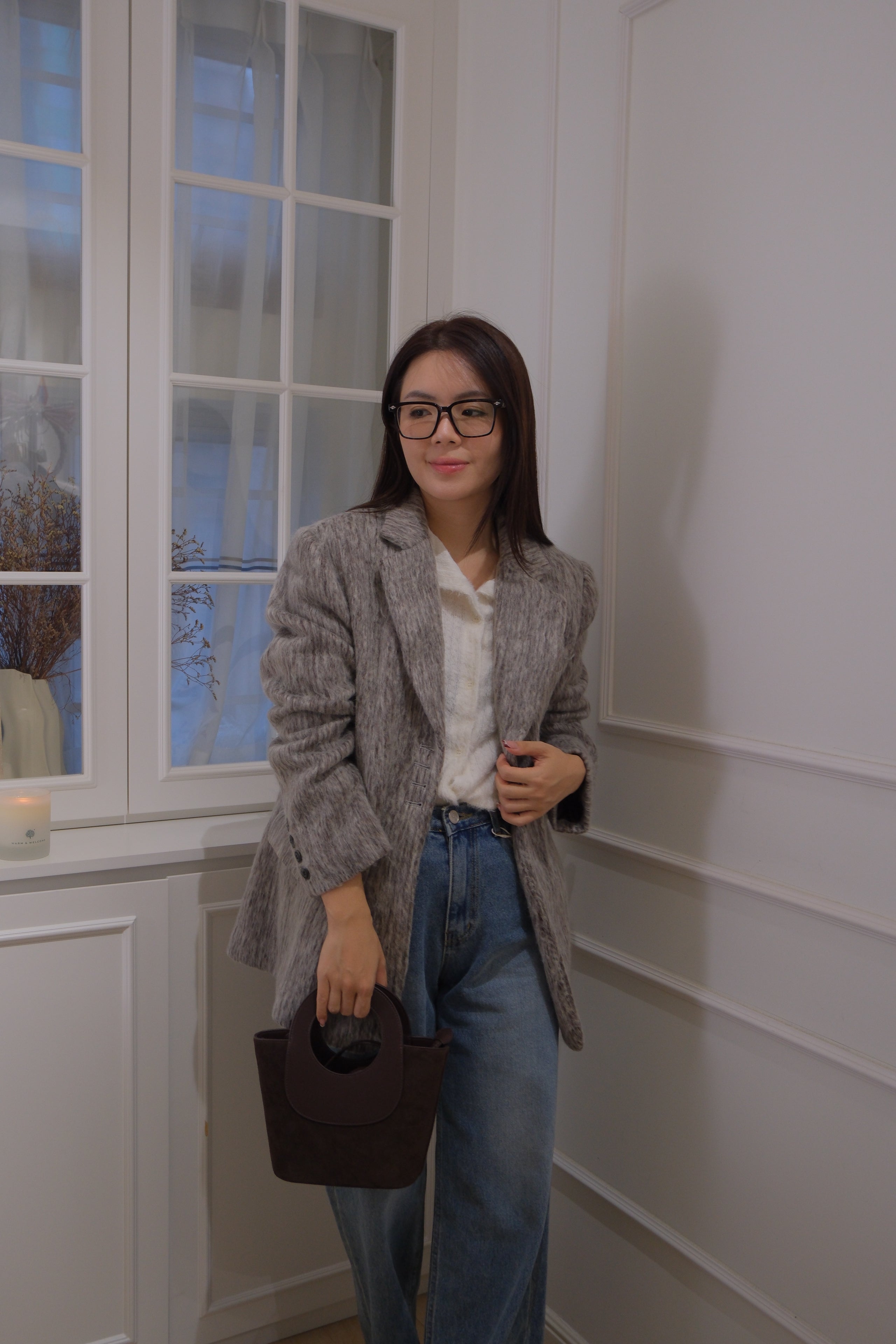 【LE ZANS BRAND COLLECTION】Cropped Gray Fluffy Jacket [J0127]